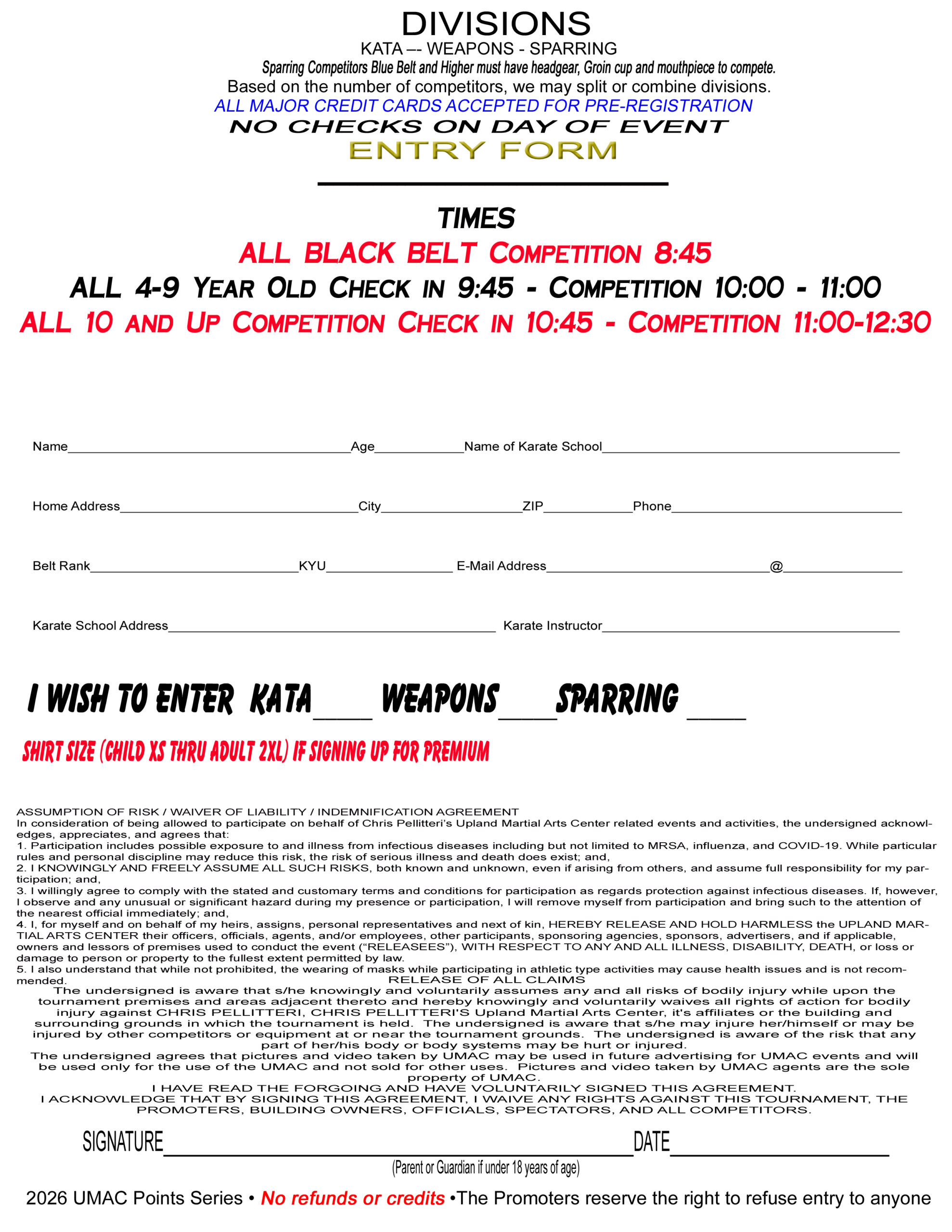 Four times a year, Shihan Chris Pellitteri opens up his dojo to other karate schools in the Inland Empire area for the UMAC karate tournaments. These intense competitions allow our karate students to test their learned martial arts skills against karate students from all over the Inland Empire. Whether the competition is kata, martial arts weapons, or karate sparring, UMAC provides a safe place for these athletes to demonstate the skills they have learned. These tournaments are great for the karate students confidence and allow the UMAC instructors to gauge the current skill level of their kids.